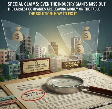 If you are a management company or property owner reading this, I hope it encourages you to take a fresh look at how you handle special claims. Partner with people who focus on this every day and let us help you turn those missed opportunities into real dollars, putting that money back where it belongs, in the communities that need it most.